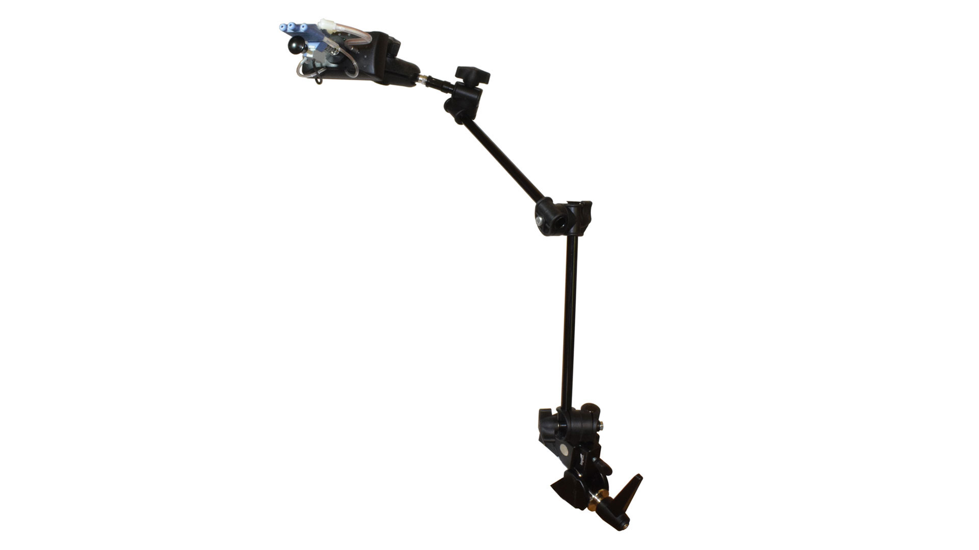 Жёсткий двухсекционный шарнирный кронштейн с зажимом Super Clamp и шаровым шарнирным адаптером RAM Mount для QuadStick. Общая длина приблизительно 24 дюйма. Шарнирный адаптер позволяет практически бесступенчато регулировать положение QuadStick на конце шарнирного крепления.