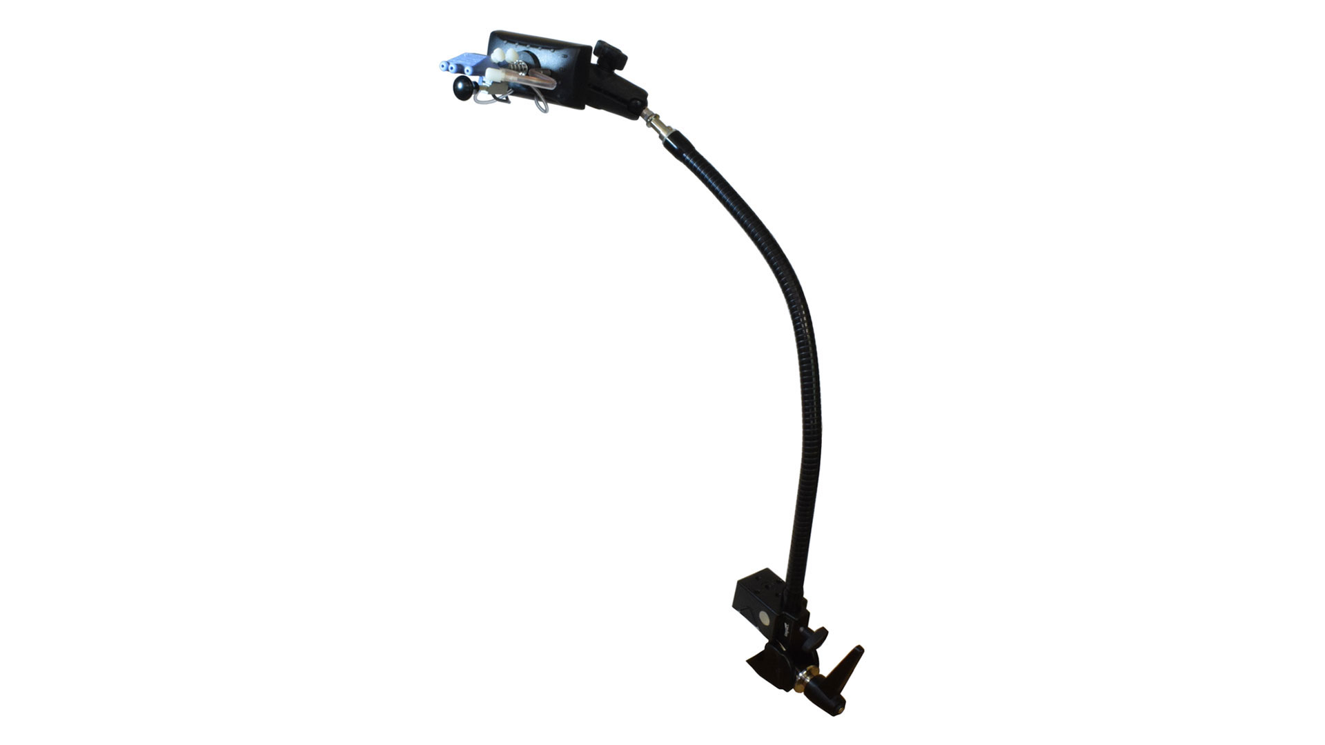 Гибкий кронштейн с зажимом Super Clamp и шаровым шарнирным адаптером RAM Mount для QuadStick. Общая длина приблизительно 24 дюйма. Шарнирный адаптер позволяет практически бесступенчато регулировать положение QuadStick на конце крепления.