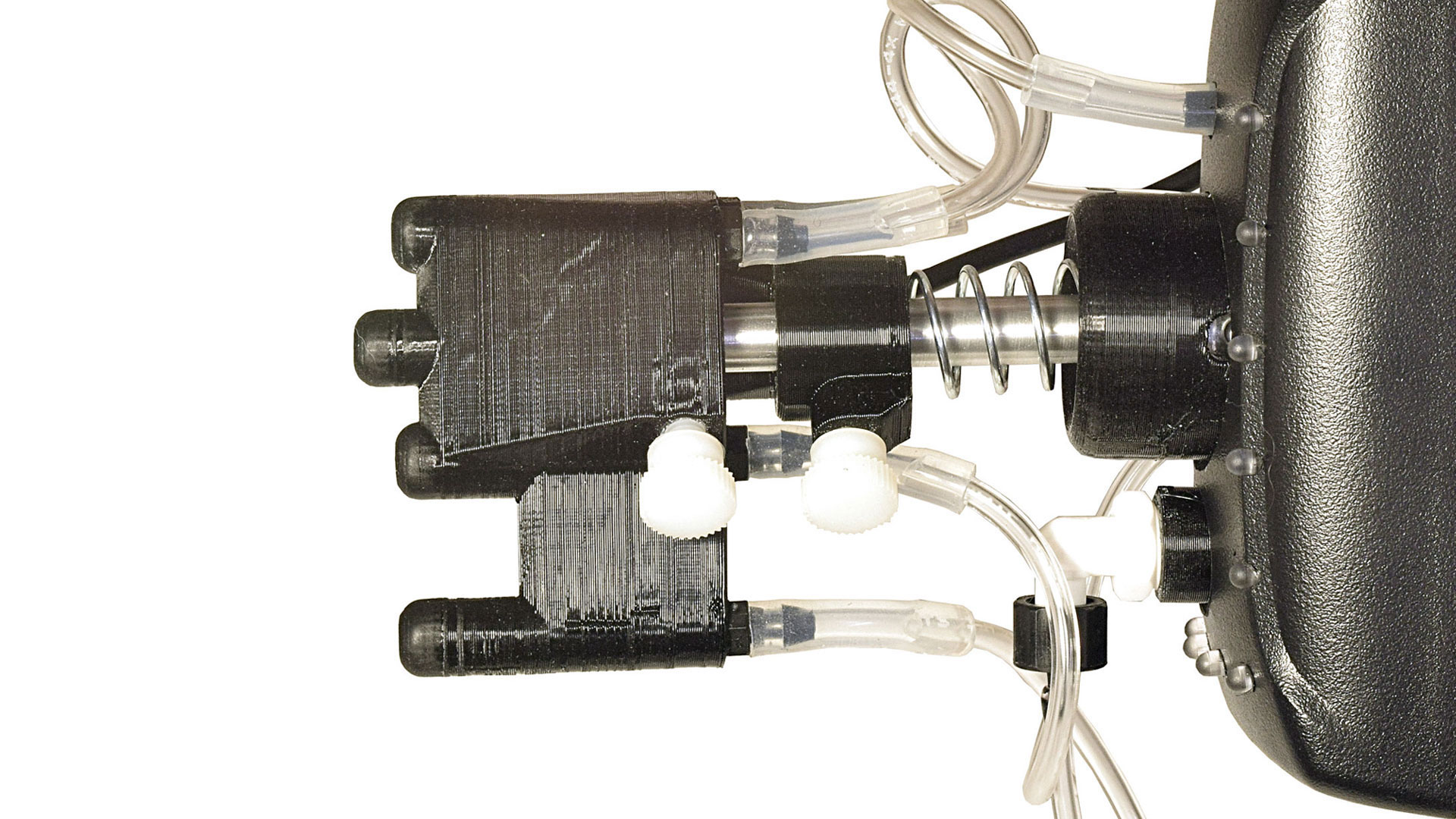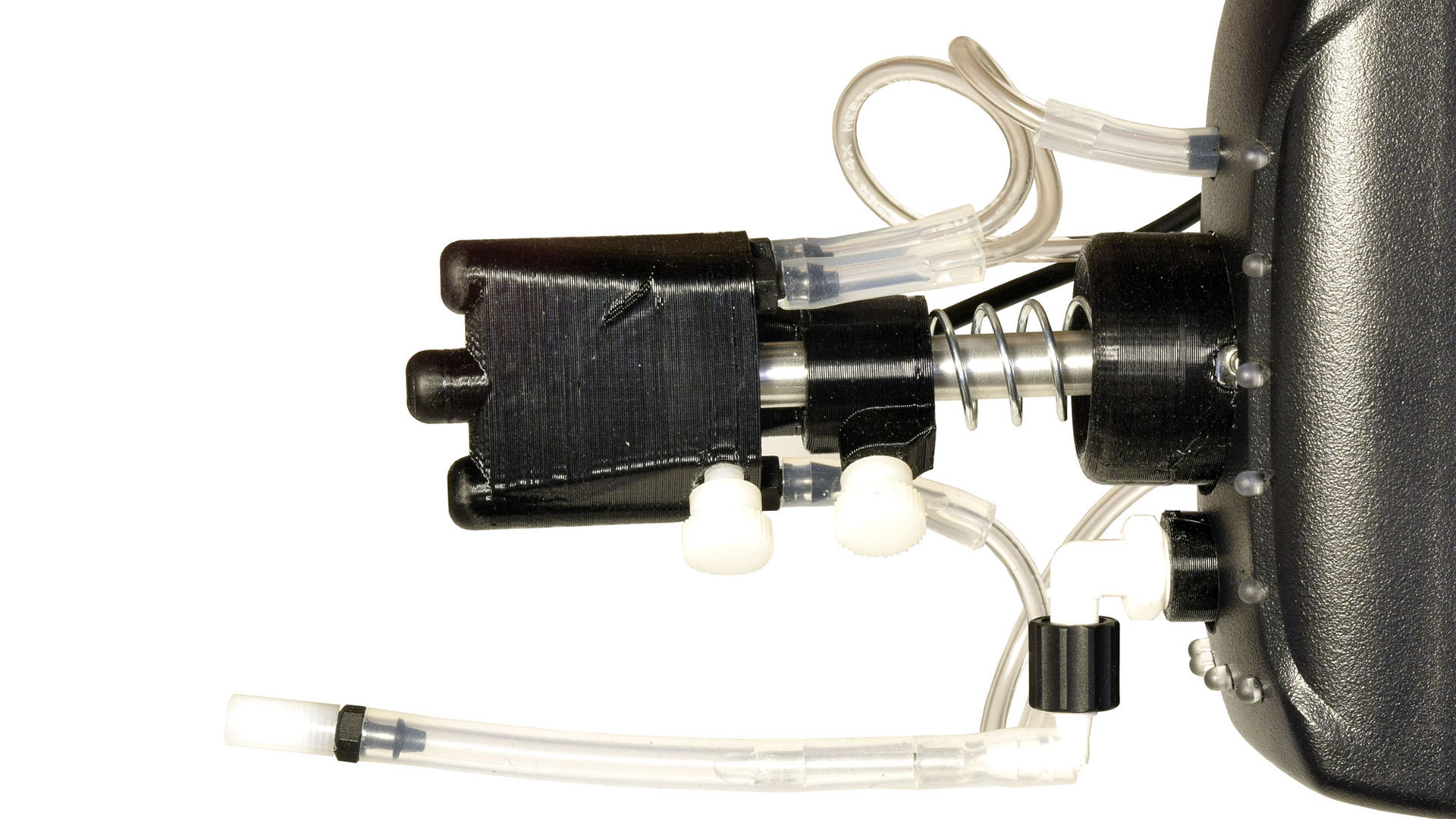 Контроллер с лёгкой пружиной должен располагаться под углом в 45° от вертикального положения, чтобы мундштук мог самостоятельно вернуться в центральное положение. Усилие в 25 граммов, необходимое для перемещения джойстика, схоже с усилием в оригинальной модели и больше подходит для пользователей с ограниченной силой губных мышц.