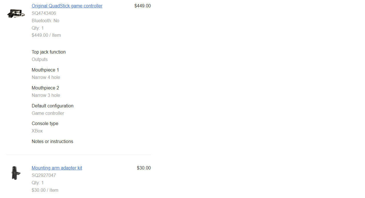 Если вы будете заказывать QuadStick через склад посредника в США, то дополнительный вес кронштейна увеличит итоговую стоимость доставки.